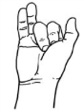 - Halte die rechte Hand im Vishnu-Mudra (Zeige- und Mittelfinger sind nach unten geklappt).