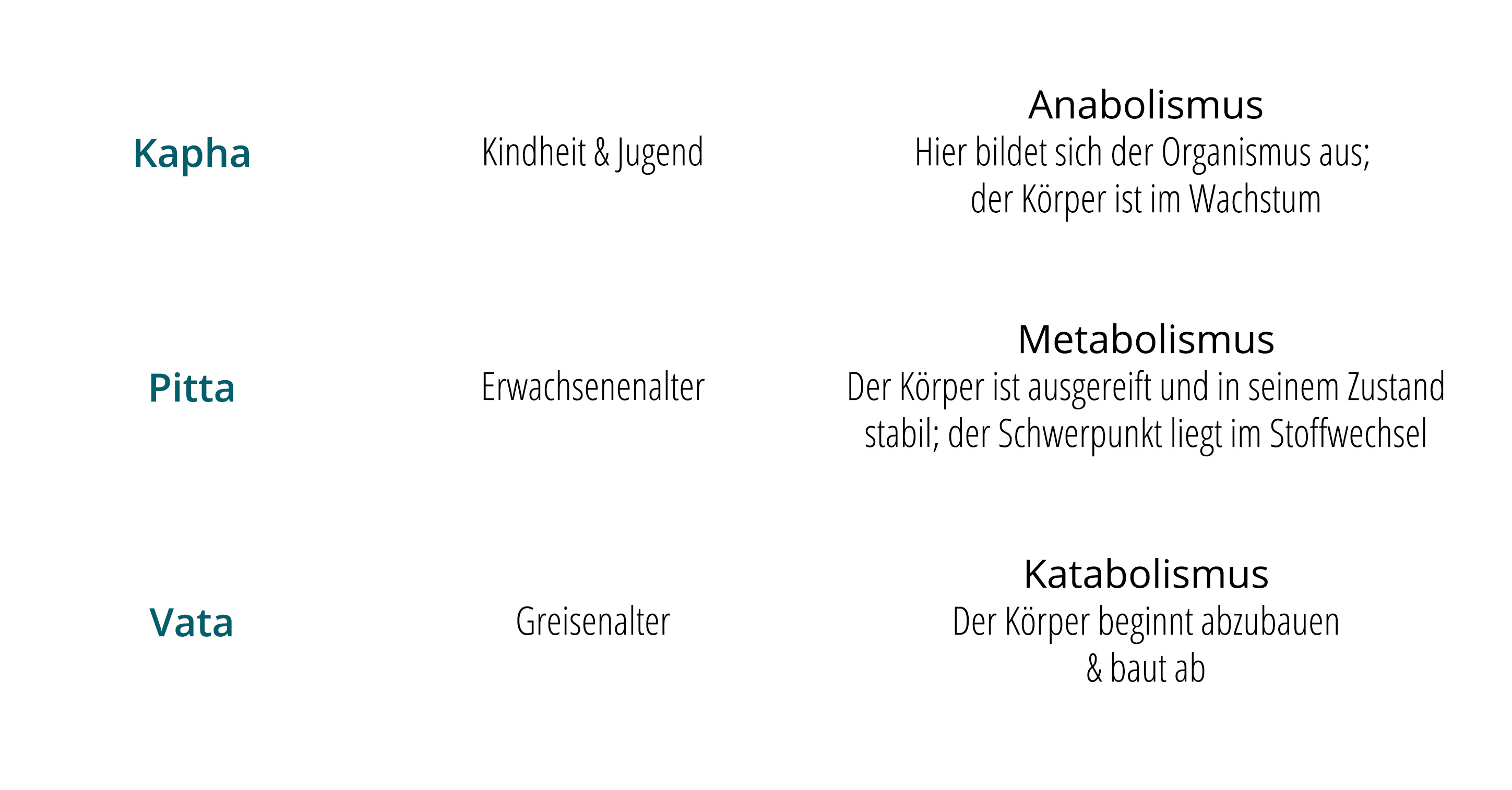 Schwerpunkte der Doshas während des Lebens und der Tageszeiten